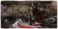 Face of Evil (Su): As a swift action, the Demon Samurai may cast fear as a spell-like ability usable at will. When he uses this ability, his face transforms into a demonic visage, and creatures which do not meet his gaze are not affected. This demonic visage is the same every time, and is a reflection of the Demon Samurai’s particular sins. If a character makes their saving throw against this effect, they may not be affected by it again for 24 hours.