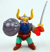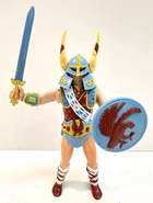 Includes removable helmet and girdle, great axe, sword, shield with eagle and features Battle-Matic action. Secret lever makes the arm move.
