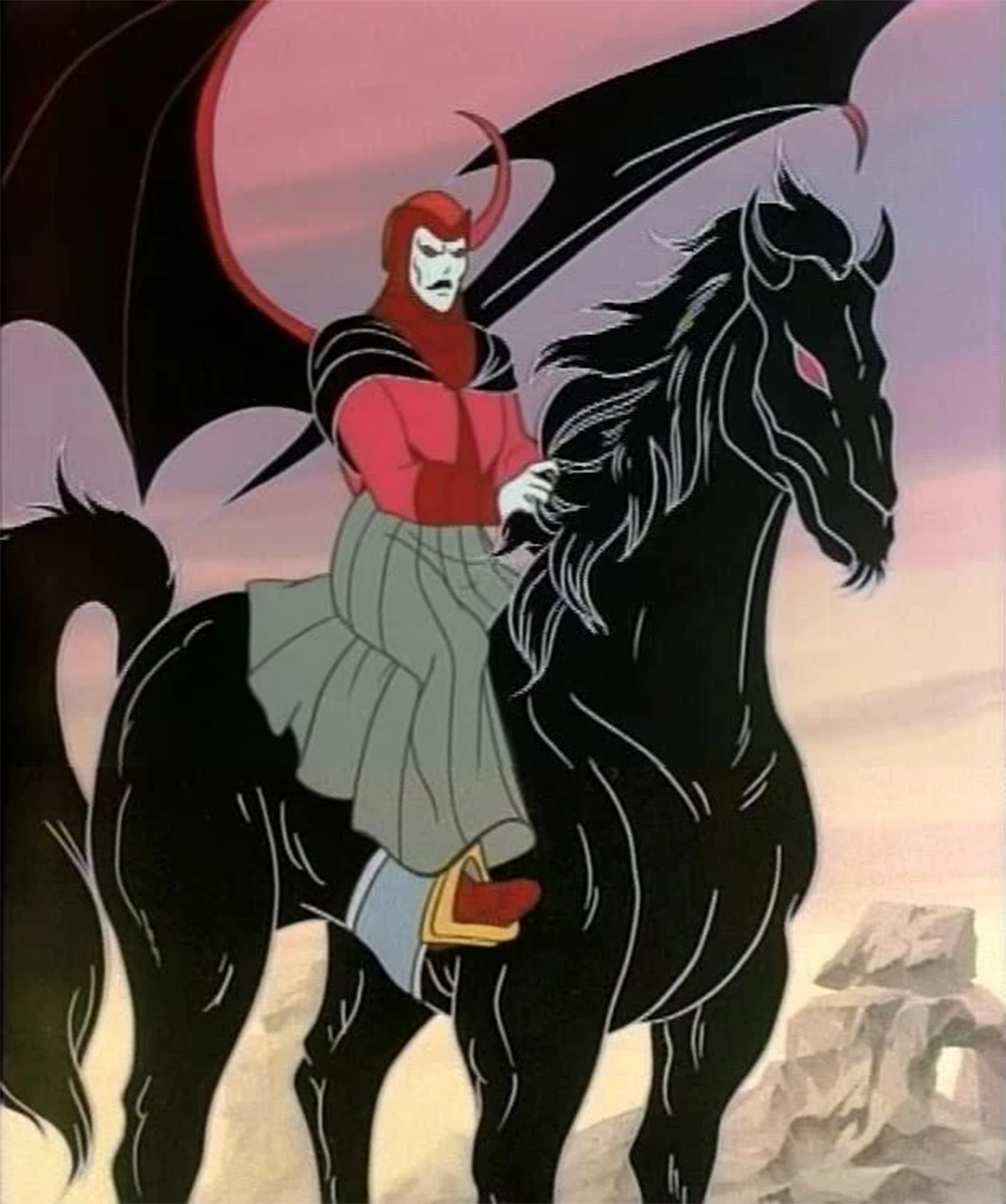 In spite of having wings, Venger prefers to teleport over large distances and only uses them when mounted atop his steed Night-Mare.